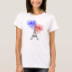 Fira Bastiljens dag och Paris med Eiffel Torn med rött och blått fyrverkeri.