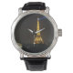 Det här är ett foto av Eiffel Torn i Paris, Frankrike. Det här fotot togs på natten. La Tour Eiffel är upplyst på natten och lyfter upp ljusets stad. En beacon roterar runt toppen av berömden och den populära turisten attraktion. Eiffel Torn är en ikonisk parisisk milstolpe.