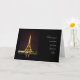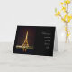 Vårt eget fotograferar av den och det enda Eiffel torn, tänt upp på en varm Paris natt. Torn reflekterar på bassängen och trafikerar brådska by. Gör en fantastisk destinationsinbjudan, bröllopmeddelande eller även julkort. Ändra bakgrundsfärg, tillfoga text, resize avbilda; gör det ditt eget och ha roligt med den!
