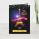 "Paris" temed, Eiffel Torn, "City of Ljus" guld ton, multi-färg och shock rosa-folderfoto Quinceañera firande, med symbolen Eiffel torn i multi-färger för att se ut som om det tänds med ljus på, ovanför och bakom. En banderoll som tillkännager en "Quinceañera" (15:e födelsedagsfesten) sitter på ena sidan torn på framsidan med dina tillfälle detaljer på baksidan med en upprepning av Eiffel Torn på ovansidan. Din dotters foto kan gå på den lämnat inuti eller så kan fotomallen tas bort, lämnande den tända bakgrunden.