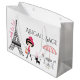 Personlig oh la chic Paris flicka och kattpresentväska med Eiffel torn och sträng ljus med ett svart och rosa tema.
