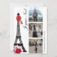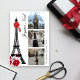 Denna vackra julkortsutformning i Paris är modern och sofistikerad och har ett allmänt svart och vitt minimalistiskt färg-system med röd helgdag. Anpassa enkelt det här helgdag med fotografier, namn eller namn och året.