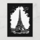 Brevkort för svartvit konst med en grym illustration av Eiffel Torn i Paris, Frankrike, vintage.