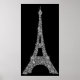 Eiffel Torn Silver Grått Swarovski Crystals Paris Poster
