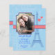 Modern och romantisk spara datumfotokortet. Eiffel Torn har två hjärtan och mönster. Blå och ljusa korallpaletten färg. Lägg till din egen bild och text. Underbar för destinationsbröllop, resenärer eller par från olika kulturella bakgrunder.