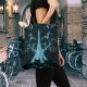 Eiffel Torn Teal Blommigt Swirls Tote Bag Tygkasse