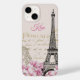 vintage Eiffel torn vykort med rosa och vita magnoliska blommor