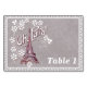 Det här bordsnumret för dina evenemang, bröllop, och party är grått med ett finare vitt gräns och en illustration i djup burgundött av Eiffel Torn i Frankrike omgiven av vita daisy blommor och texten Oh, Paris! Anpassa bordsnumret med mallen.