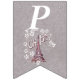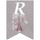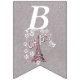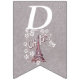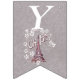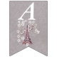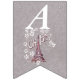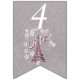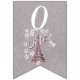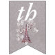 Den här flagga-formade buntbanderollen Grattis på födelsedagen är lätt grått med en illustration av Eiffel torn i Frankrike omgiven av vita blommor av daisy med texten Oh, Paris. Anpassa födelseår med mallarna.