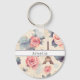 Keychain with an elegant pattern. Pink roses, blue-gray butterflies and an Eiffel tower. A French themed pattern.