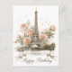 En elegant och romantisk gratulationskortdesign med en vacker illustration i vattenfärgstil av Eiffeltornet. Det ikoniska parisiska landmärket är omgivet av mjuka, pastellrosa och krämfärgade rosor och accentueras med ömtåliga gyllene fläckar. Anpassa med din egen text på banderollen längst ned.