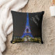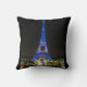 En vacker vy från Paris, Frankrike. Det berömda landmärket, Eiffeltornet, sett på natten upplyst av starkt blått ljus.
