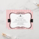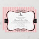 Flickigt Paris-inspirerat bröllopsinbjudan. Elegant rosa randig med svart band som går vertikalt (bakom den fina konsolen). Whimsy-illustration av Eiffeltornet för att passa Paris-temat. Om du vill ändra färg eller behöver hjälp med designen, vänligen maila mig. paula@labellarue.com
