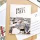 Vacker handletterad Paris-postkort med en vy över Paris, Frankrike.