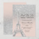 Eiffeltornet silver glitter rosa Sweet 16 Inbjudningar