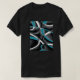 Eighties Blue White Grey Line Curve Pattern On Bla T Shirt