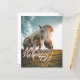 Einen schönen Valentinstag mit schauendem Pferd und handgeschriebenen Grüßen auf der Vorderseite der Karte. Die restlichen Flächen sind frei verfügbar.