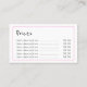 Prisa kort för chaufförer. Designen presenterar en upprepande symbol av en bil och chaufför lock. All text är fullständigt configurable för tillträdeet som ditt eget specificerar. Baksidaen av kortet har utrymme för prissätter av upp till sex objekt som ska skrivs in.