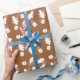 Denna manliga beställnings- gåva som slår in papper, har upprepa avbilda av lantliga vitekollonar och som tänder - bruna oaklöv på en brun bakgrund.