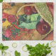 Ekologisk mat, trädgårdsgrönsaker, blommande blomm kökshandduk