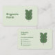 Ett affärskort i grönt toner med löv för en jordbrukare eller en familjejordbruk, särskilt för ekologiska livsmedel. På baksidan finns det fullständig information om anpassadet som har dekorerats med ikoner.