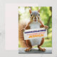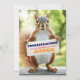 En glad och charmig gratulationskort med en bedårande ekorre som stolt håller i en tom banderoll, redo för ditt personliga meddelande. Den lekfulla posen och den ljusa utomhusmiljön ger designen en varm och uppiggande känsla som fungerar vackert för examina, studieresultat, befordran eller någon prestation värd att fira. Texten på banderollen på framsidan kan anpassas helt – lägg till ett namn, ett busigt meddelande eller en hjärtlig hälsning. Baksidan är tom och ger utrymme för handskrivna eller ytterligare personliga texter om så önskas. Tryckt på premiumkortspapper förenar detta kort humor, sötma och flexibilitet, vilket gör det till ett perfekt val för vänner, familj, studenter eller någon som förtjänar ett leende med sin framgång.