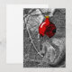 Penn- och bläckteckning av en ekorre som klättrar i en julgran. Ekorren blir förvånad när den ser sin egen spegelbild i en julgranskula. Den blanka röda kulan sticker ut mot den svart-vita teckningen och framhäver hur konstigt det måste vara för ekorren att se sig själv.
