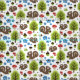 Den gulliga bebiset gömma sig i oakskogen med lite en fågel, blåa blommor, och den röda polkaen pricker det seamless mönster för champinjoner.