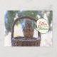 Foto av en tjock ekorre sitta på basket i det fallande snö som säger "God jul" i en tal-ballong. I vinter samlas snö i bild med en vit bakgrund av fallna snö och grönt grenar i evergreen träd. "God jul" är skrivet med rött och rött skript. Det här fotot på en ekorre under vintern kan anpassas och tryckas på många olika fotoprodukter.