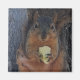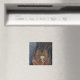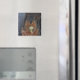 En magnet med ett foto av en ekorre som äter ett äpple.
