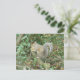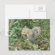 Det här söta vykortet innehåller ett foto av en söt fluffy grått-ekorre som klandrar en akorn och sitta i träd i skogen.