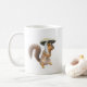 En ekorre håller ett svamprum som ett paraply på detta söta mugg.