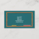 Ett affärskort för en matematiklärare eller geometrilärare med en grönt schalkboard i ett ram av trä, en kompas och ekvationer av Schrödinger och Newtons lag om universell gravitation. Ikoner används för visning av mobil information och e-postinformation. Kontaktuppgifter för fullt finns på baksidan.