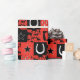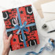 Hästdjur och jockeys kommer att kärlek göra detta röda och svarta, mönstrade pappra omslag tryckta med hästar, ridskor, hästskor och jockeys