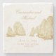 This wedding coaster has a line art drawing of el arco in Cabo San Lucas Mexico. Text at the bottom reads "Cabo San Lucas." You can personalize with your name and wedding date. This design coordinates with other designs from the El Arco Cabo San Lucas Wedding Collection.