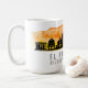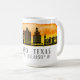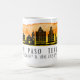 Kaffe mugg har El Paso Texas city skyline silhouette med solnedsatt vattenfärg stänk och latitud och longitud karta koordinater