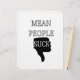 Svart och vit typografi. En mänsklig hand med tummen nedåt. Text: Elaket People Suck.