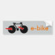 Stiliserad bild av en svart cykel med röda blixtar och med ord e-cykel