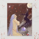 Original konst. En dam med lila hår, meteorer som faller från himlen, månen verkar hållas av ett mycket starkt träd och en magisk stav är skyddad inuti en glob.