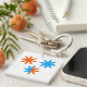 Håll dina nycklar organiserade med denna iögonfallande eld- och is-åttapunktiga stjärnnyckelring. Den miniatyrversionen av denna livfulla symmetriska grafik visar den intensiva kontrasten mellan orange och blå elementära toner. Detta moderna geometriska tillbehör är ett bra sätt att lägga till en färgklick och personlighet till din väska eller bildörrarnycklar. Det himmelska stjärnbursts-motivet är både symboliskt och stilrent, vilket gör det till en perfekt liten present eller partygåva till dem som älskar abstrakt konst och helig geometri. Bär en bit av elementär fusion vart du än går.