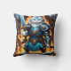 En modig katt står redo för strid, som är försedd med blå armor, svärd, omgiven av flammor och vapen i en fängslande fantasi.