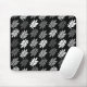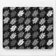 Elder tree leaf silhouette in a surface pattern design with grey and white detail on a black background.