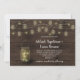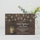 Rustik murbruk vas fylld med eldflugor och gnistrande strängljus med eldflugor utspridda överallt. Allt på en bakgrund av lada trä. Textrutorna är lätta att anpassa med din egen information.