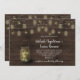 Rustikt murbruksglas fyllt med eldflugor och gnistrande strängljus med eldflugor utspridda överallt. Allt på en bakgrund av lada trä. Textrutorna är lätta att anpassa med din egen information.