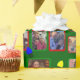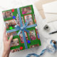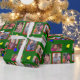 Den här pappra radbrytningen har rundade rektanglar med foton inuti och en ram av antingen rött eller grönt. Det har också skingrats runt julljus i lökar.