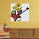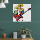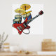 An electric guitar in red with a drum set behind it. This design looks really effective on these Poster