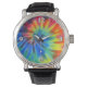 Manarnas vintage, svart läderremsa med en bild av ett virvel av elektriskt regnbågsfärgämne. Valfri klocka ansikte. Se matchande droppörringar och runda charm. Se hela samlingen This & that Watch i avsnittet ACCESSORIES.