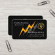 At the top left corner lies your prestigious name and job title. In the opposite direction is a gold "home bulb repair tools" logo you can use. Directly underneath is the business name with the card details in the gold power plug buttons.