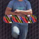 Loud diagonal color slashes on deep black deliver a fast, street-ready retro feel. Bright red, golden yellow, cobalt blue, and hot pink create a punchy high-contrast statement from nose to tail. The gritty texture keeps it bold without feeling glossy or flat.
