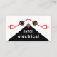 A white cover features a creative red electrical wiring circuit shaped into a rooftop frame. In its circuit you have two electrical symbols with a lampshade casting a black beam of light. Inside the beam lies your prestigious name with the business name "electrical" which you can change.